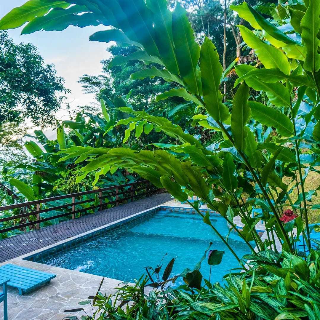 A pousada possui uma bela área externa, composta por terraços e jardins delicadamente projetados em todo seu entorno, com vegetação diversificada: flores, bromélias, orquídeas, folhagens, árvores etc; tudo integrado com a mata que a cerca, o que torna o ambiente e o clima muito agradáveis.